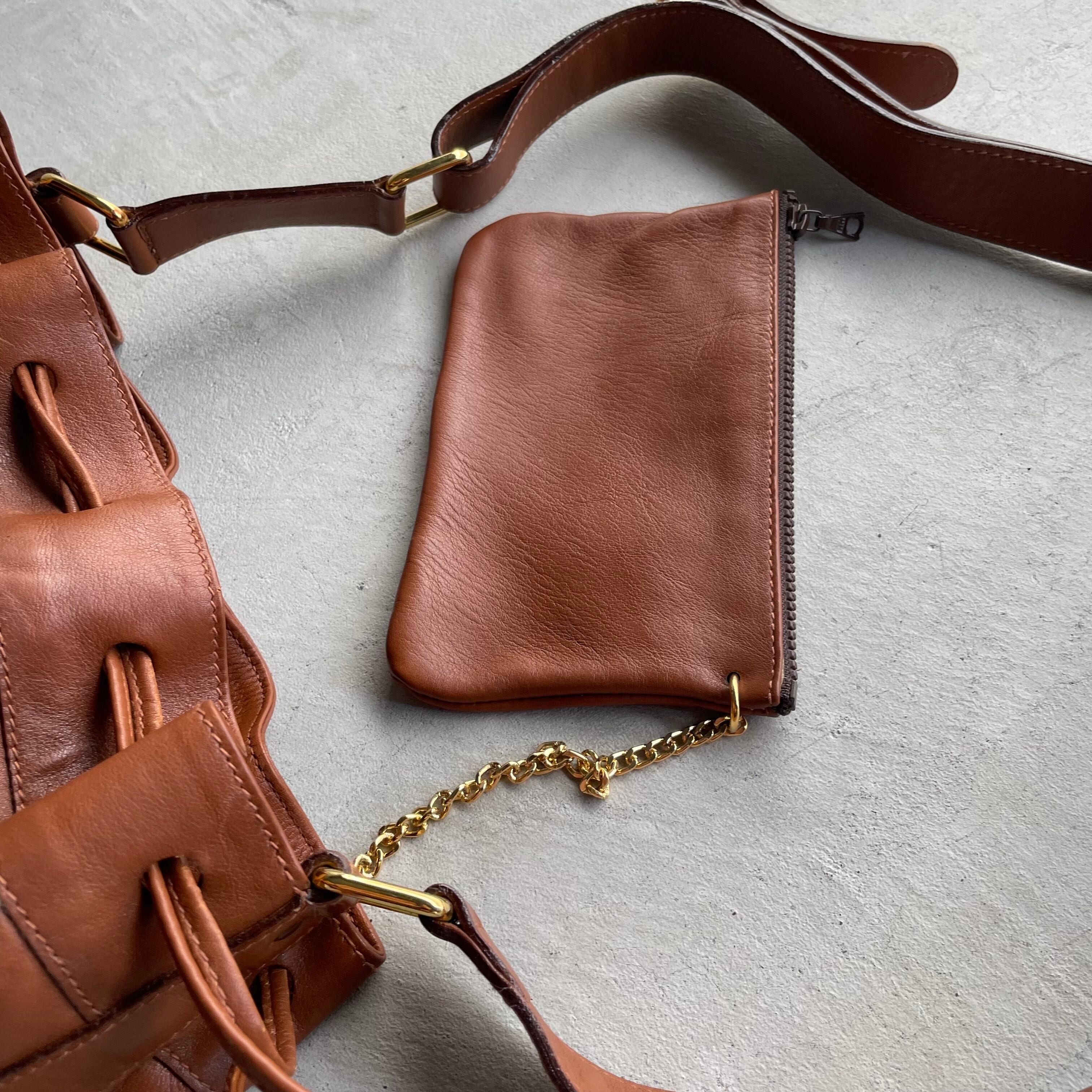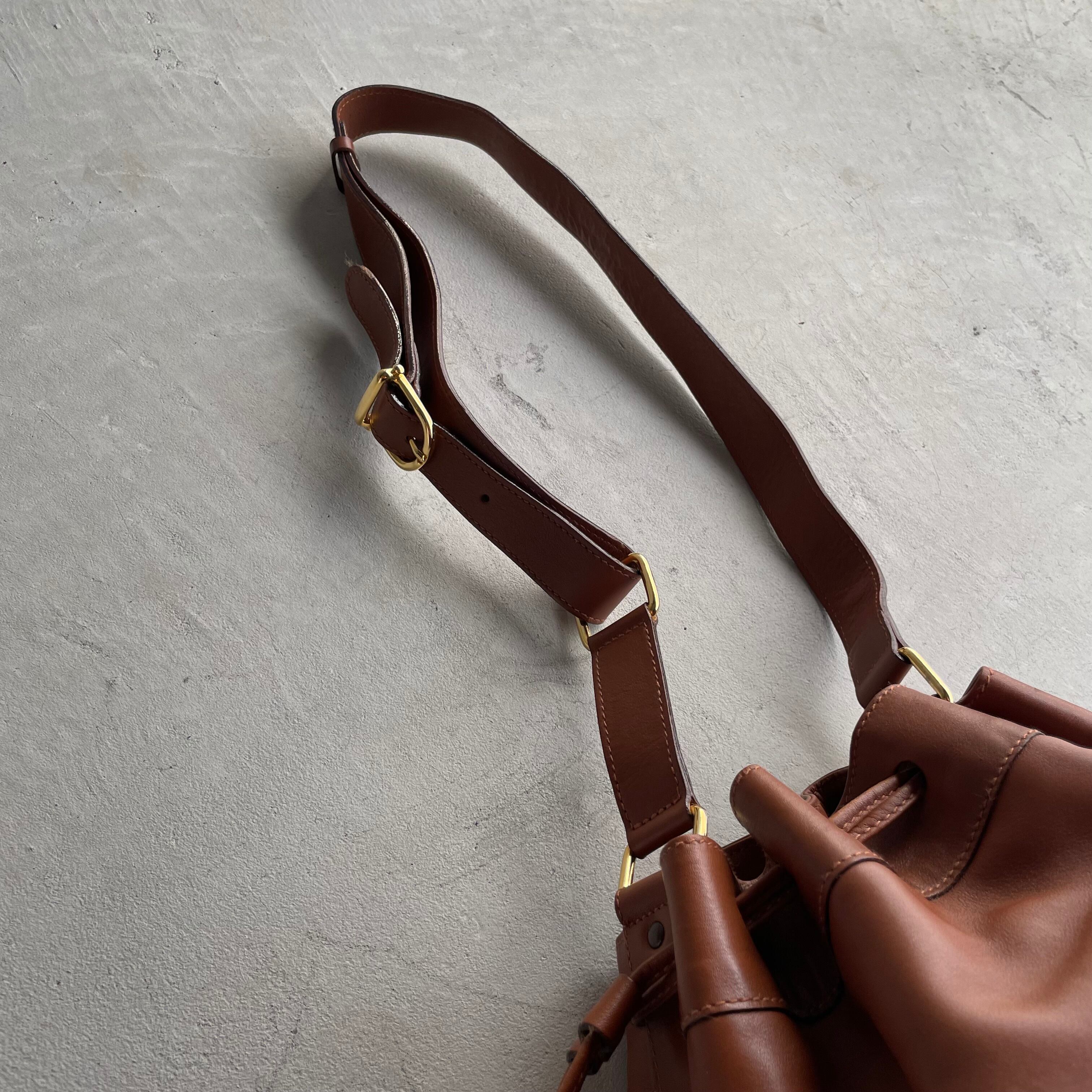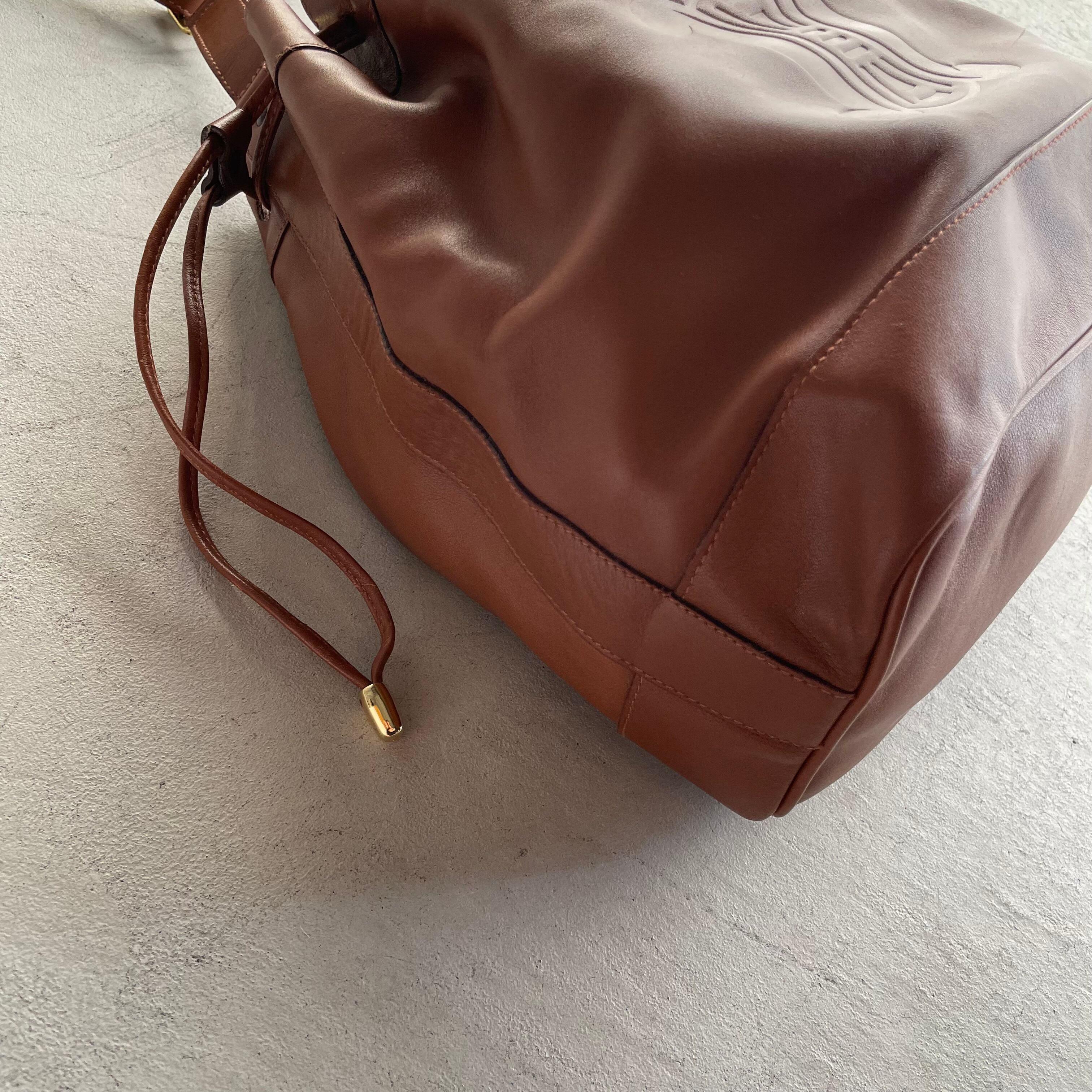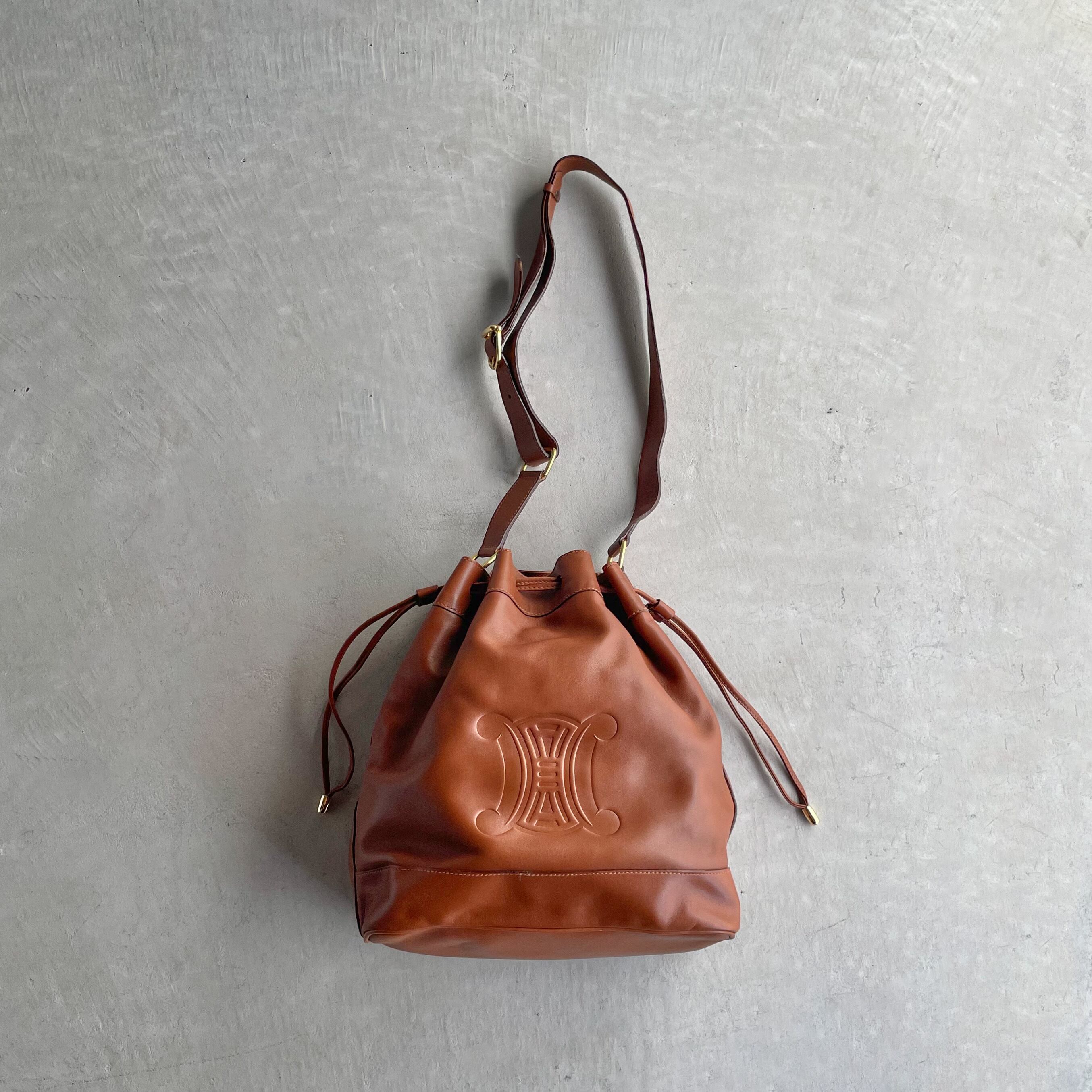 celine/vintage leather drawstring shoulder bag セリーヌ レザーショルダーバッグ 巾着 トリオンフ