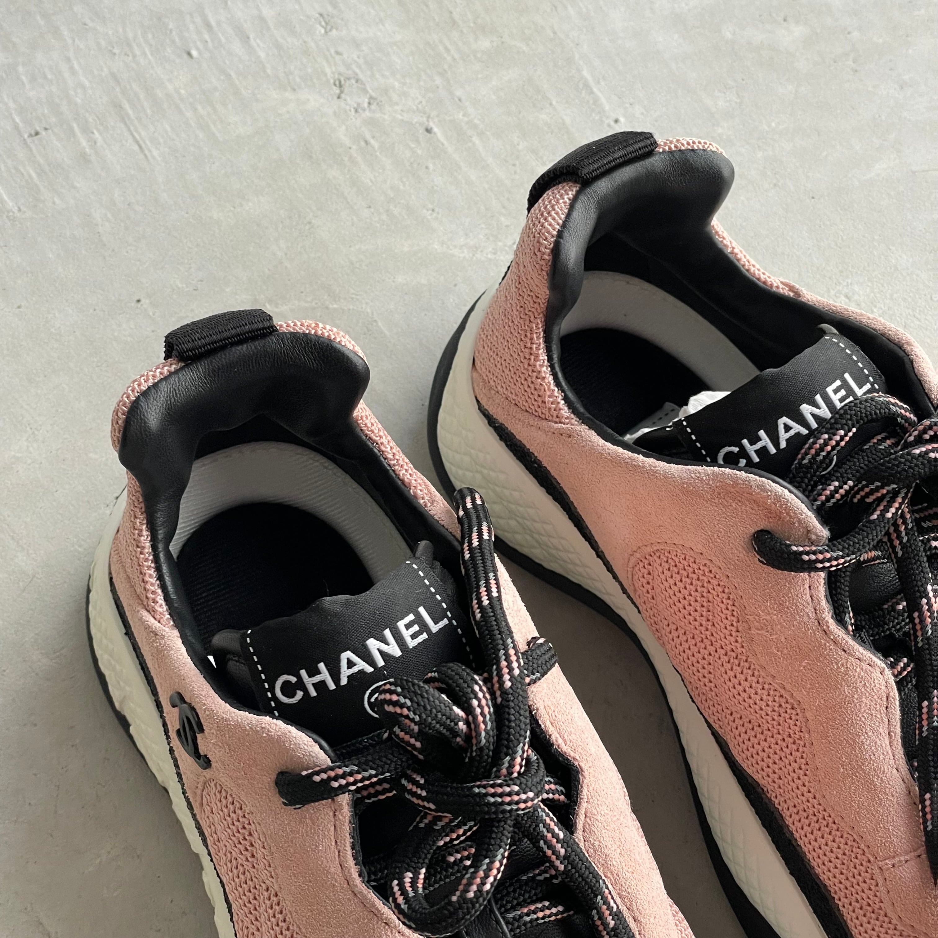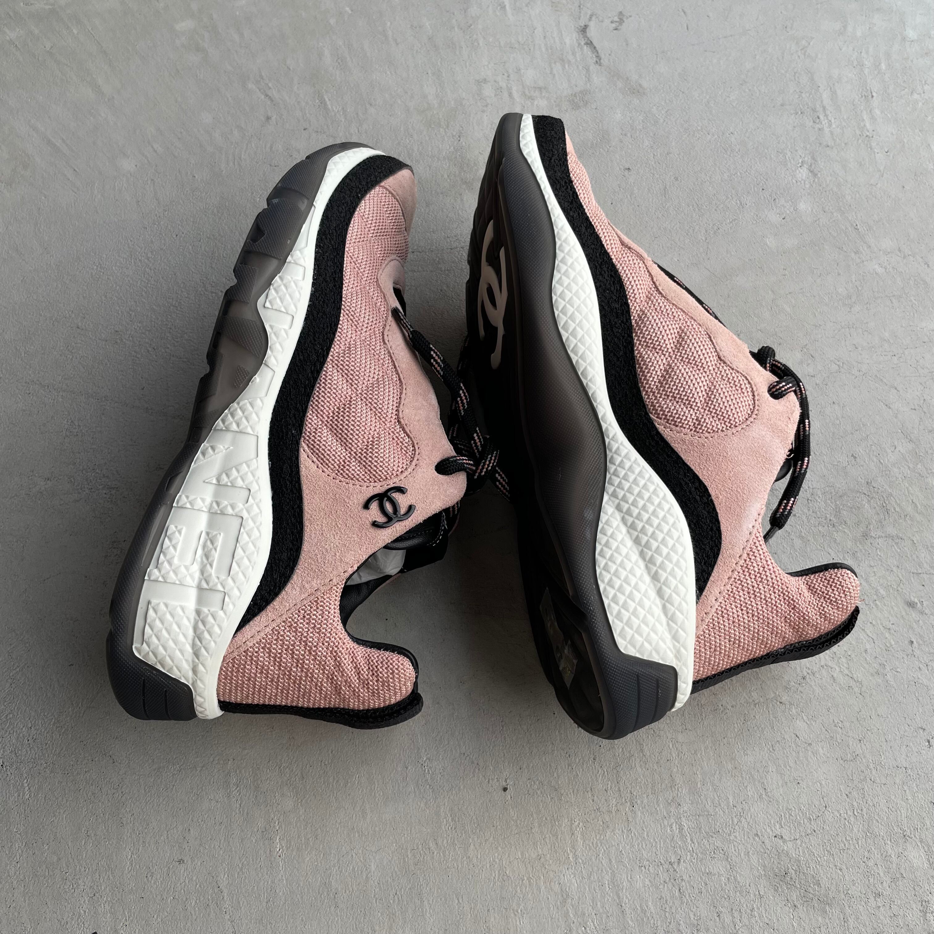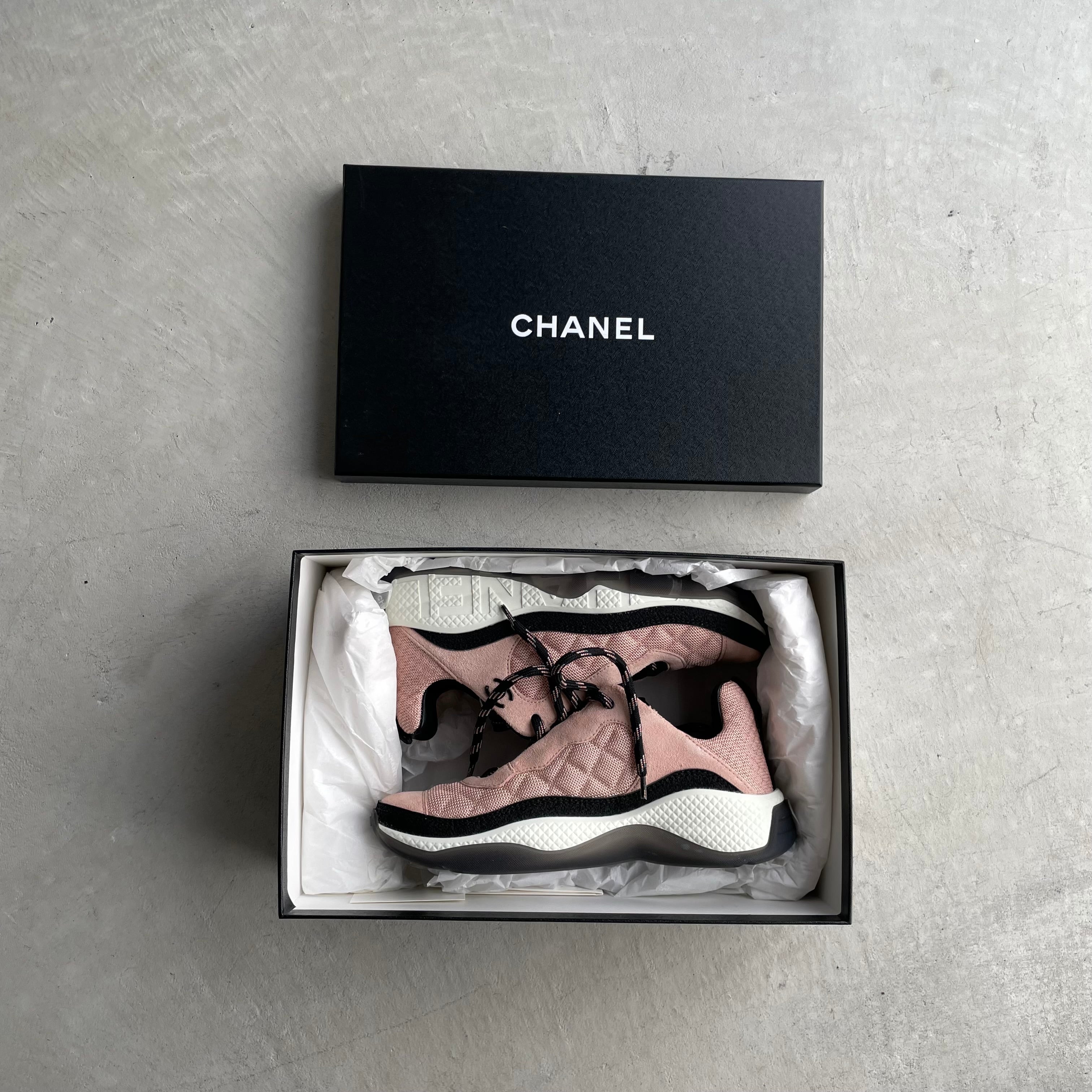 シャネル キルティング スニーカー ロゴ ココマーク ピンク