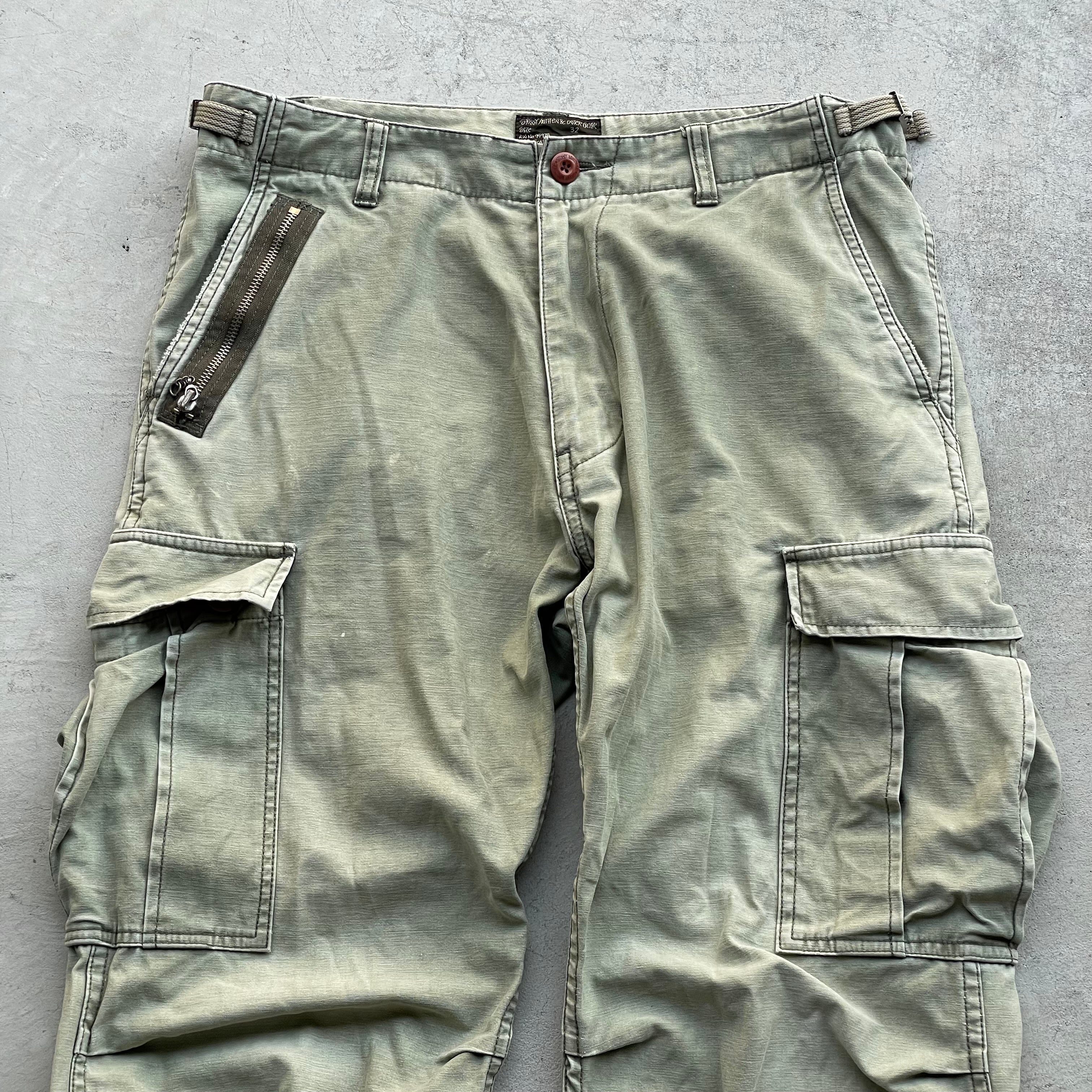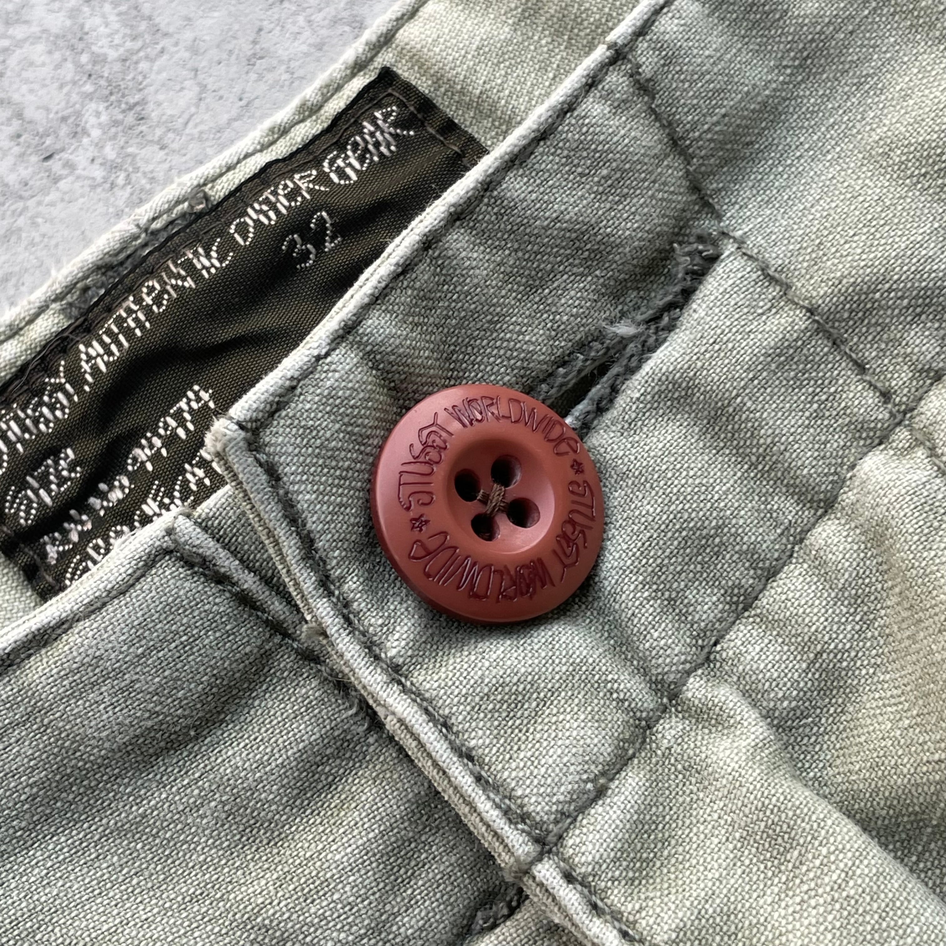 左膝ポケットのフラップボタン1つ欠品、隠れて目立ちませんが社外製のボタンがついてす。